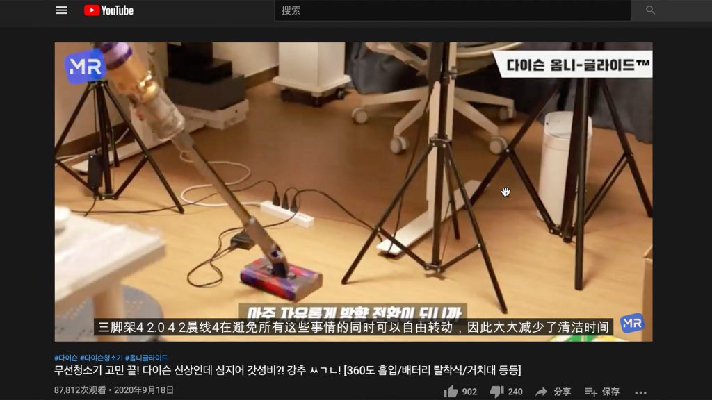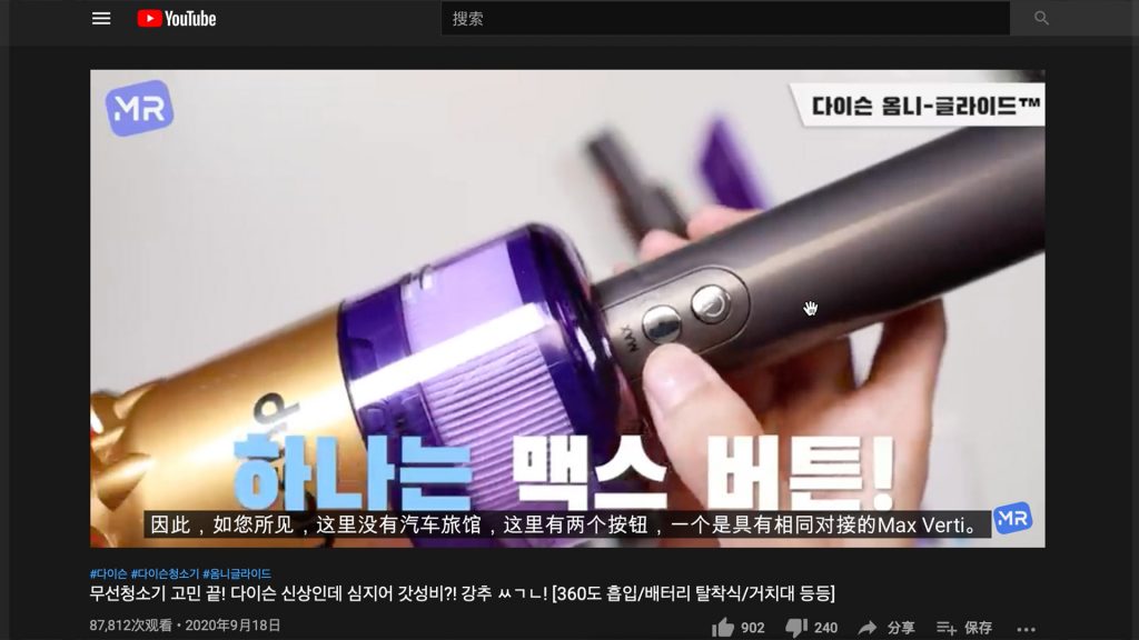 一番操作体会之后,之前的那位博主作为一位独身茕居人士表明这款吸尘器很合适他这样住在小户型的人运用。咱们依据以上印象材料猜想韩国现已出售了该款产品,可是现在释出的材料信息根本都是韩语显现,根据YouTube渠道翻译的中文字幕信息也或许和实际情况存在必定误差。就近来戴森官方发布的视频来看,信任不久之后国内也行将上市这款吸尘器,心动的朋友能够张望一下。