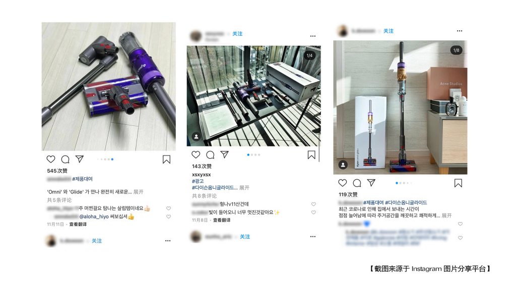 在博主的展现中咱们能够看到,除主吸头外,其还配有好几款其他的吸头辅佐不同场景下的家居清洁,并且尘筒、电池仓、吸头、吸尘杆等部位看上去均可拆开,或许能够在不同的组合中完成多样清洁“玩法”,而这一点恰恰在闻名图片交际软件Instagram上也已有韩国朋友做了共享。
