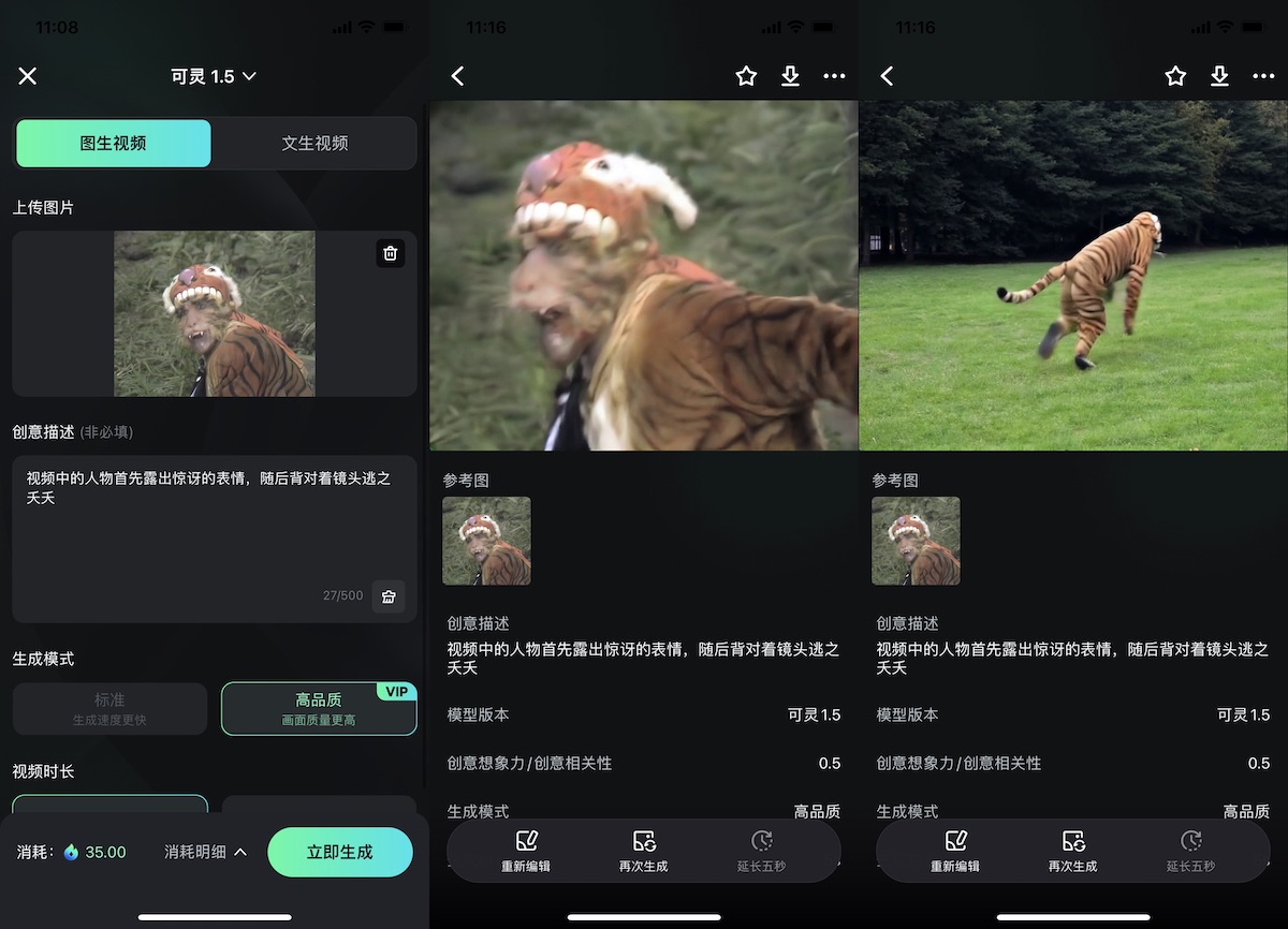 ٭注:本次测验运用可灵 AI 付费高档账户,渠道为 iOS 版。